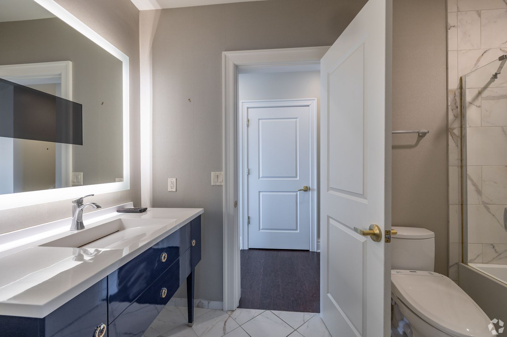 Residences provide open-concept living, gorgeous hardwood floors, radiant granite countertops, stainless steel appliances, full-size washer & dryer, balconies on select units, and breathtaking city views all around.