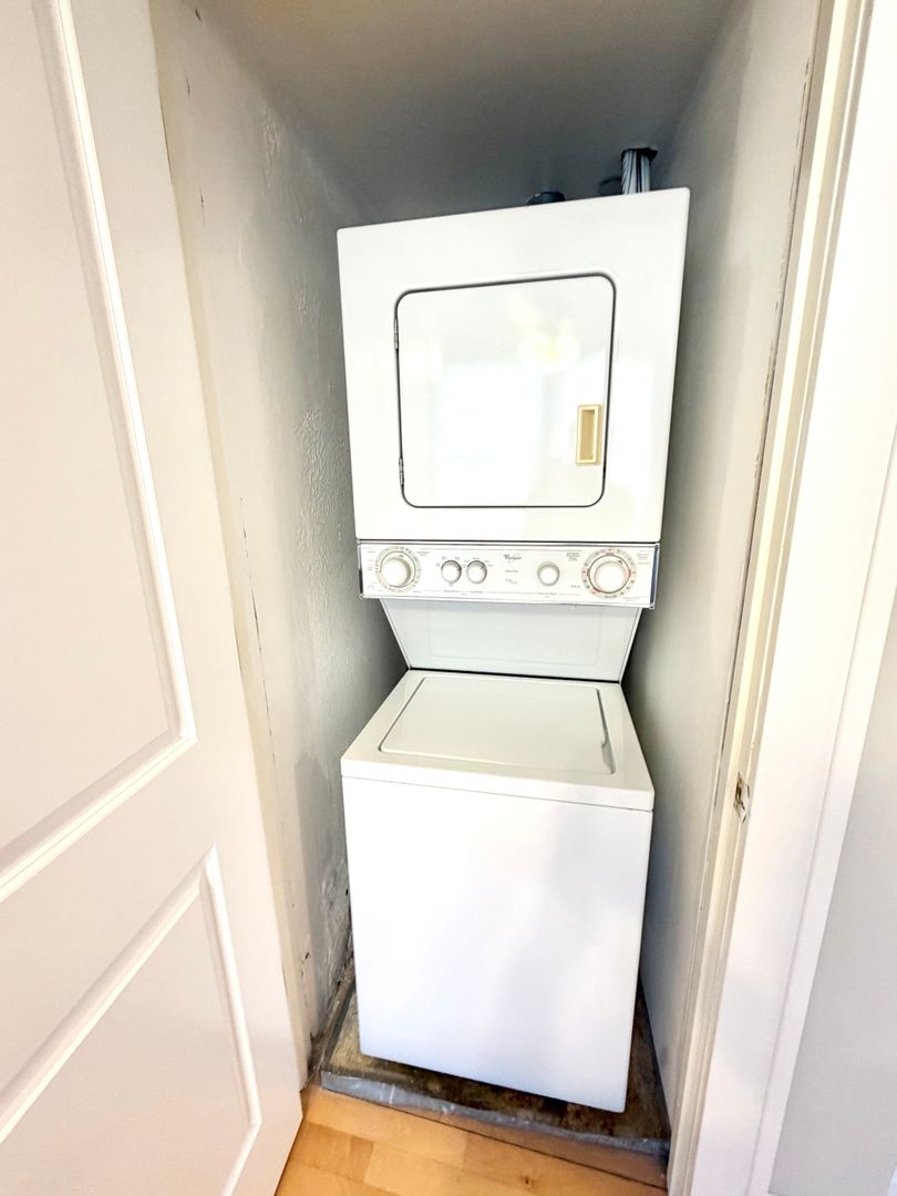 Step inside to stunning hardwood floors that add warmth and character throughout. The kitchen features sleek stainless steel appliances, including a dishwasher and microwave, making cooking and cleanup effortless. A spacious walk-in closet keeps everything organized, and the in-unit washer and dryer bring ultimate convenience to your daily routine.