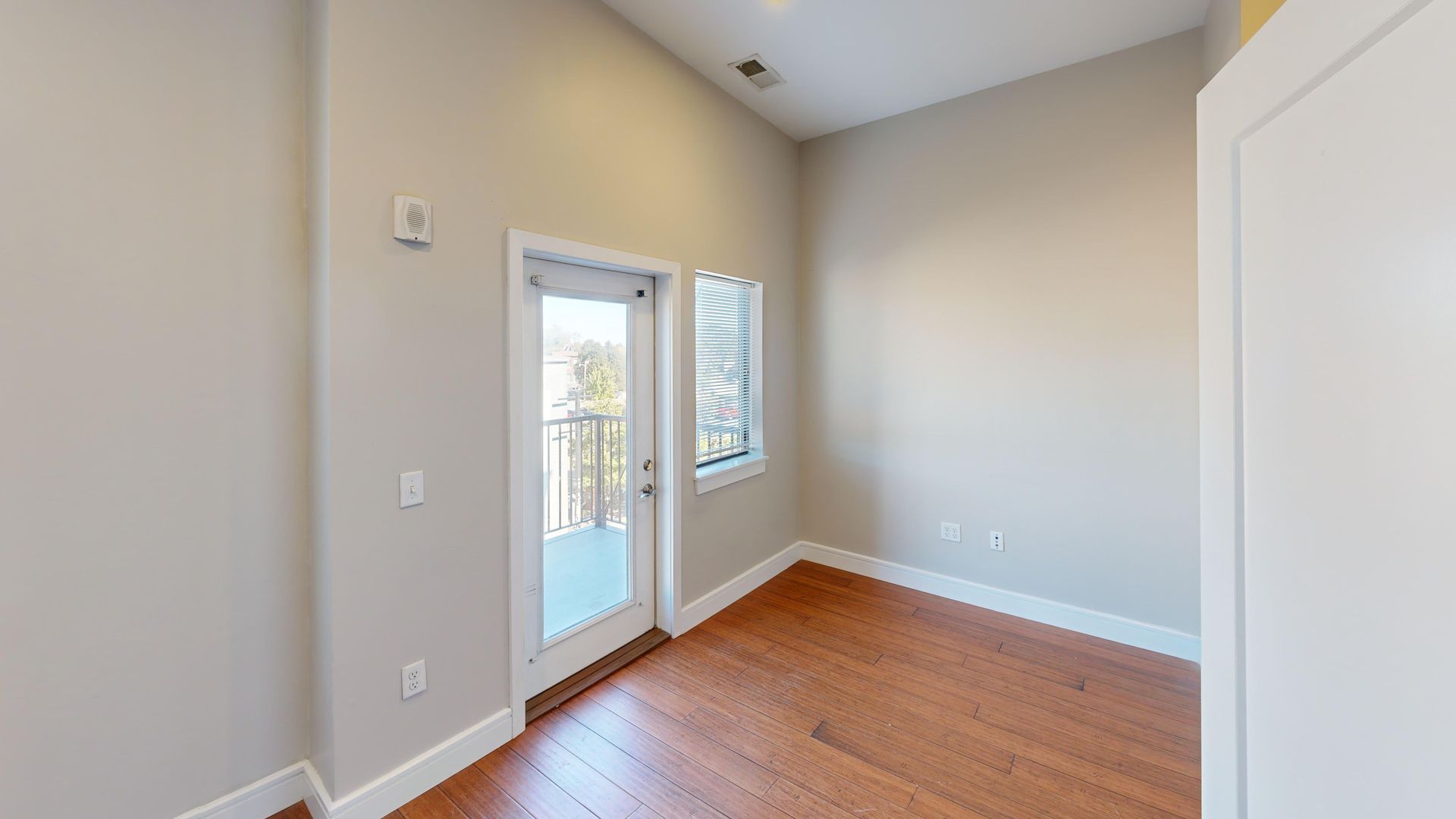 - White Aluminum Blinds and Ceiling Fans