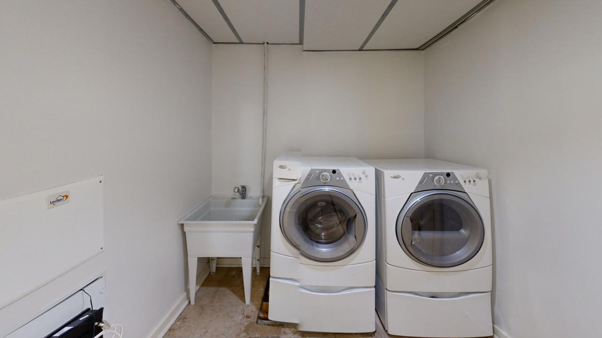In-unit washer and dryer with dedicated laundry area, sink, and extra storage